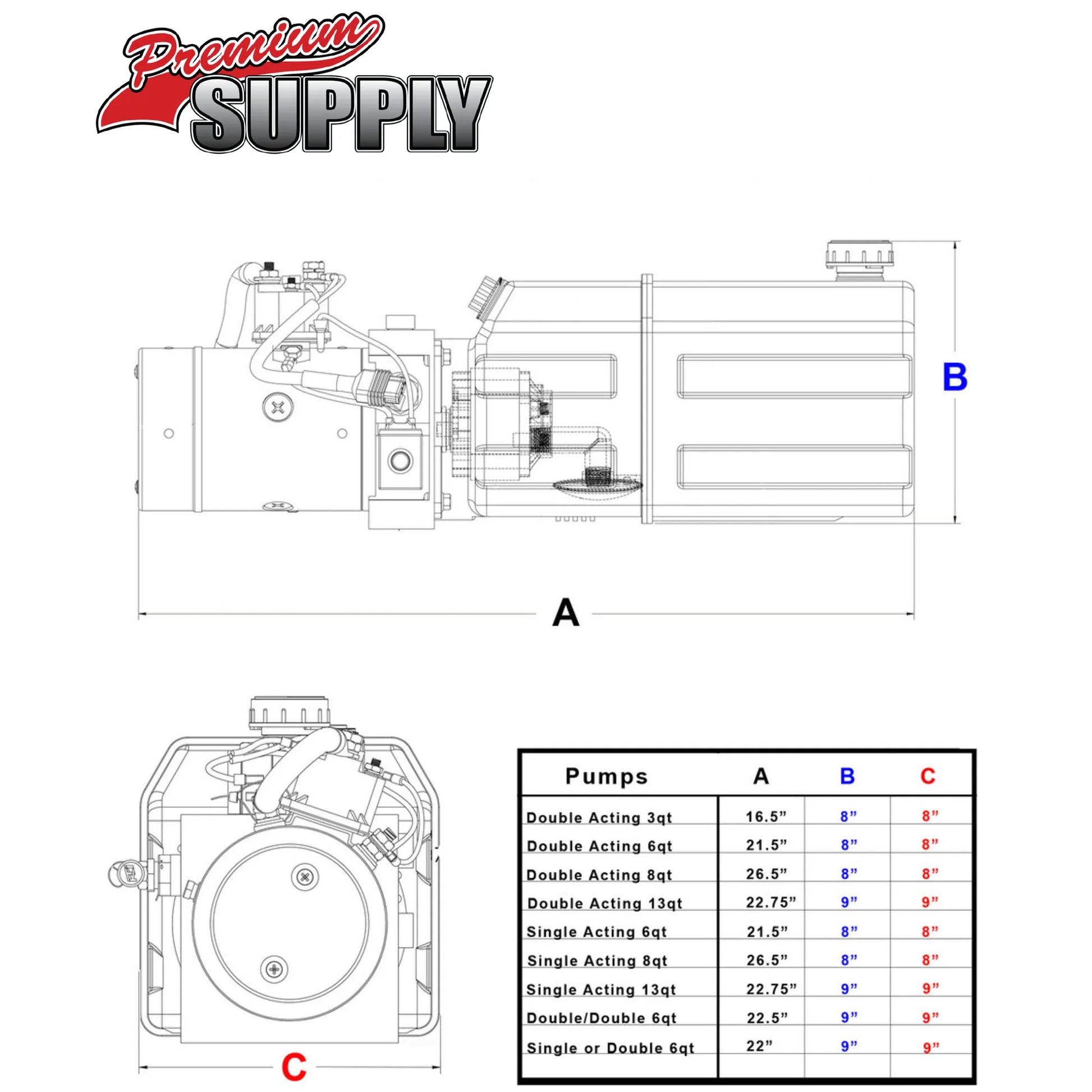 6 Quart 12V KTI Single Acting Hydraulic Pump | DC-4348